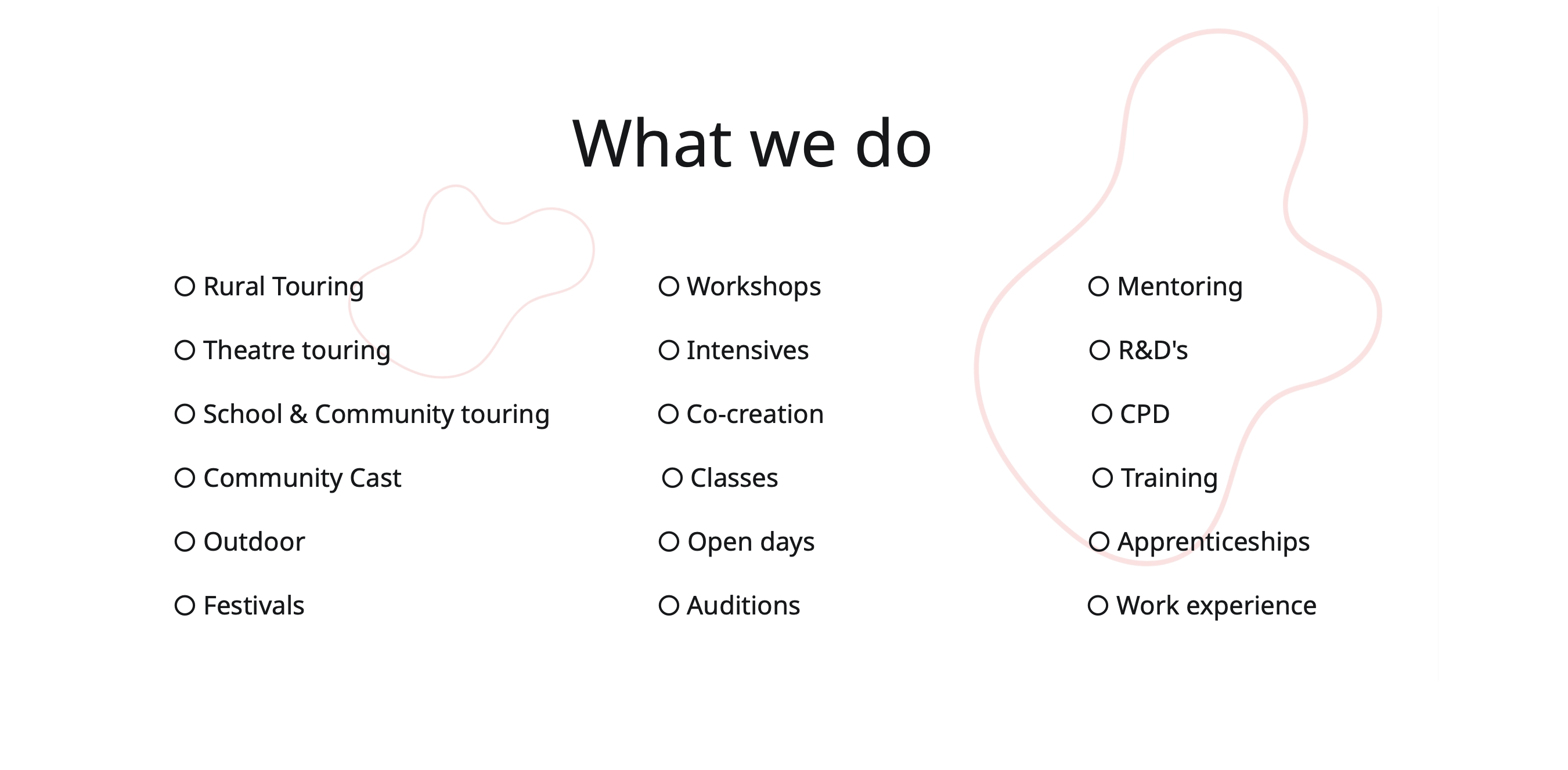 aKa have a cracking time creating bright & playful dance theatre shows that are loaded with colour & craziness, taking them out & about to visit a variety of audiences in a variety of places and spaces. They have had an absolute blast visiting an eclectic mix of venues across the UK - Glastonbury Festival, The Place, Rich Mix, The Book Club, Thimblemill Library, Half Moon Theatre, Grittleton Village Hall to name a few, receiving audience feedback such as "wow, wow, wow"Casson & Friends & "Infinitely interesting" Anna Rachael McBride.
